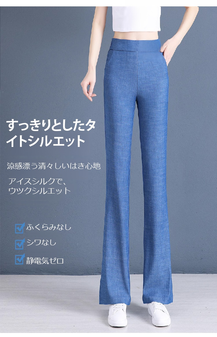 接触冷感薄手ジーンズフレアパンツ