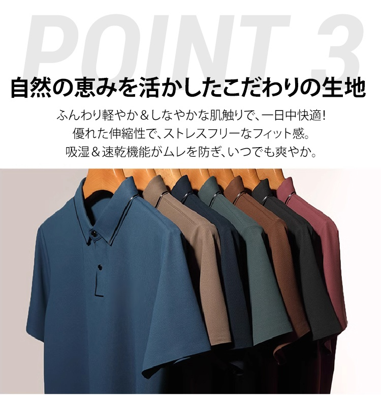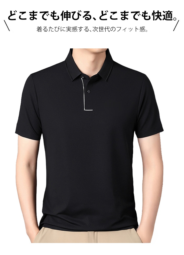 メンズ折り襟シルクポロシャツ、通気性快適冷感メンズ半袖、夏用メンズ半袖